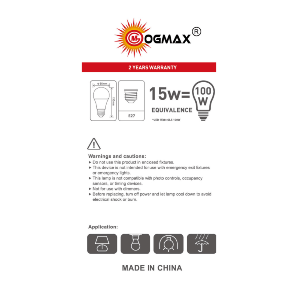 OGMAX LED Lamp 110-240V 15W E27 Daylight