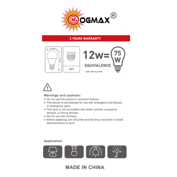 OGMAX LED Lamp 110-240V 12W E27 Daylight
