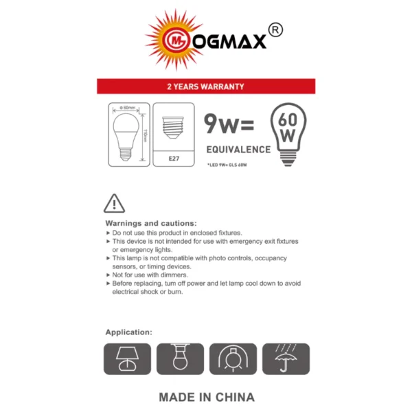 OGMAX LED Lamp 110-240V 9W E27 Daylight